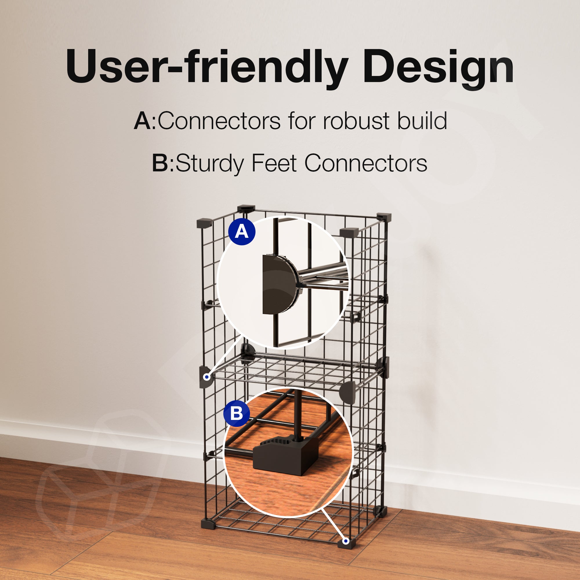 BOXJOY Metal Mesh 4 Shelf Black Wardrobe Storage Rack - Vertical