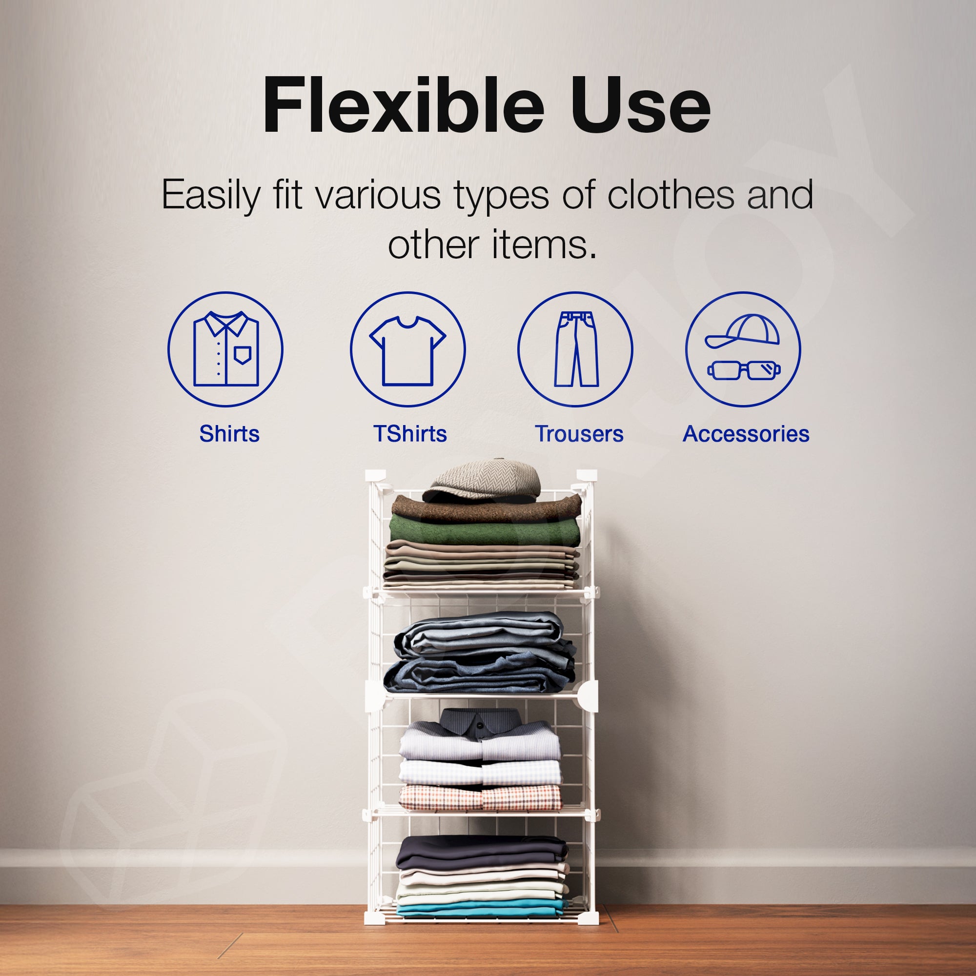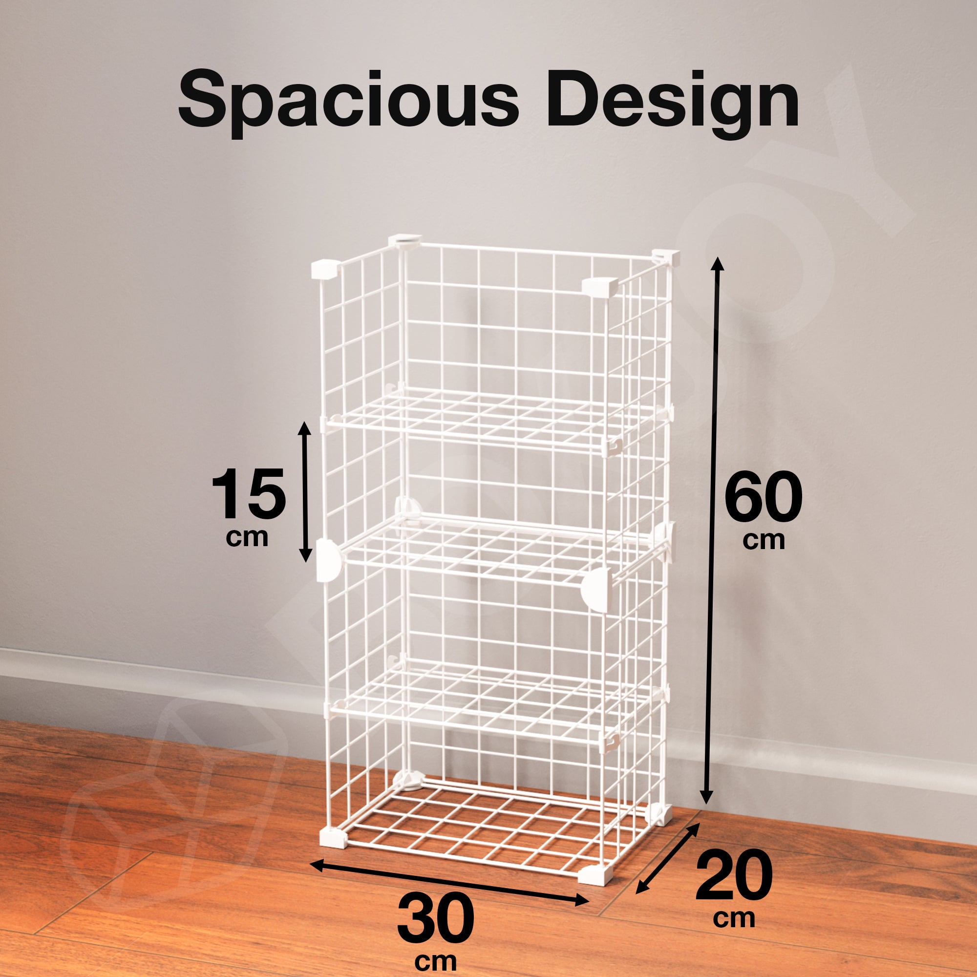 BOXJOY Metal Mesh 4 Shelf White Wardrobe Storage Rack - Vertical