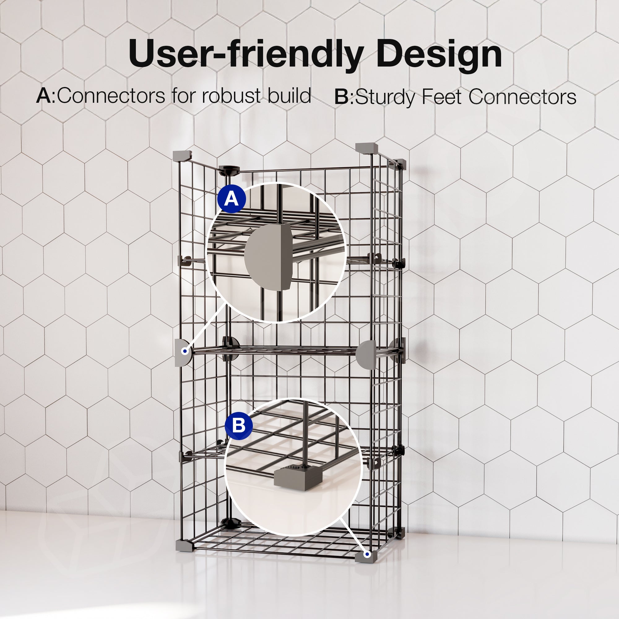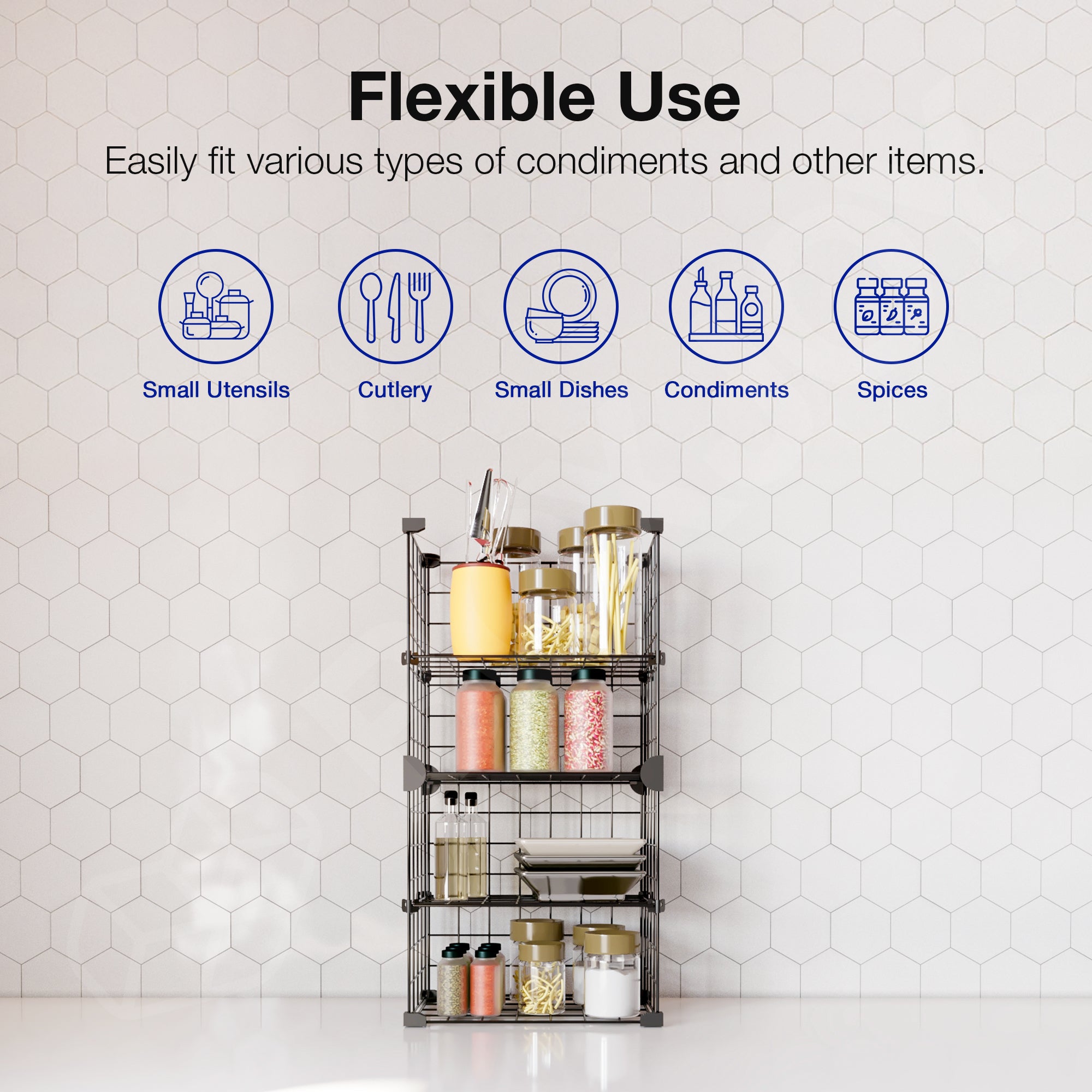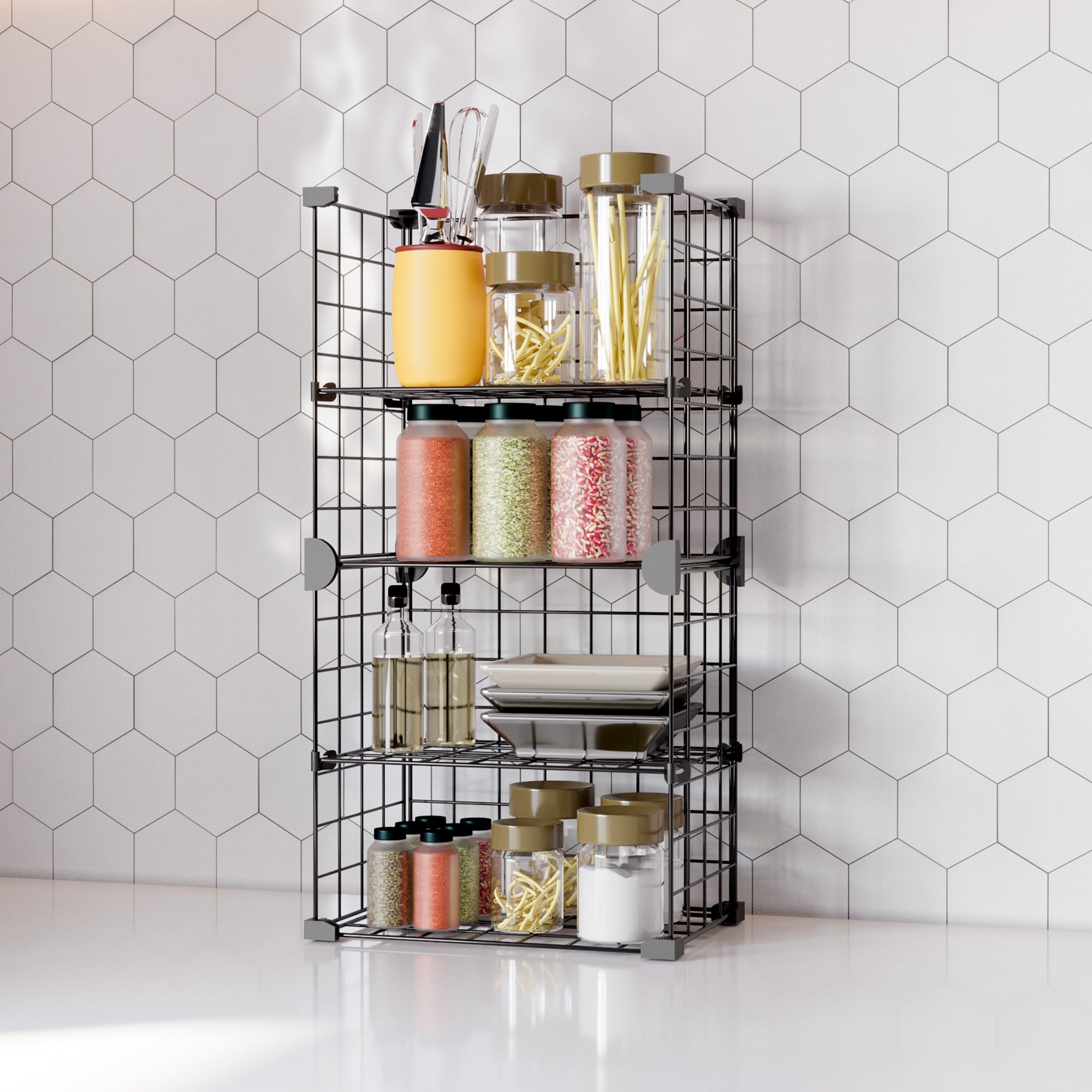 BOXJOY Metal Mesh 4 Shelf Black Kitchen Storage Rack - Vertical