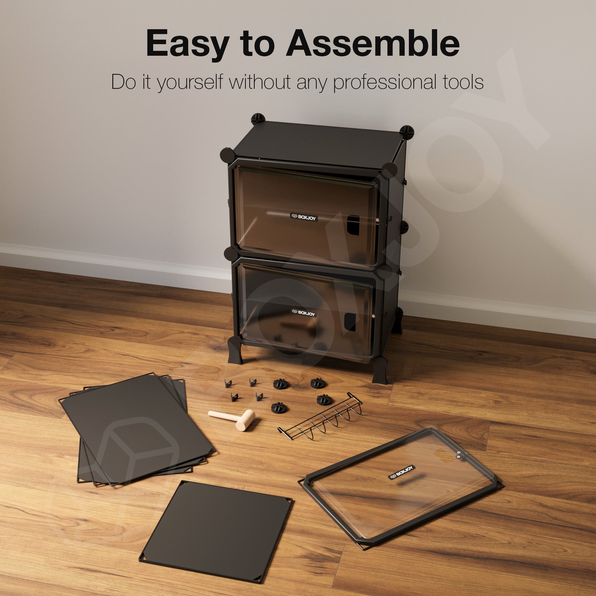 BOXJOY Hard Plastic 6 Shelf Black Shoe Rack with Transparent Door