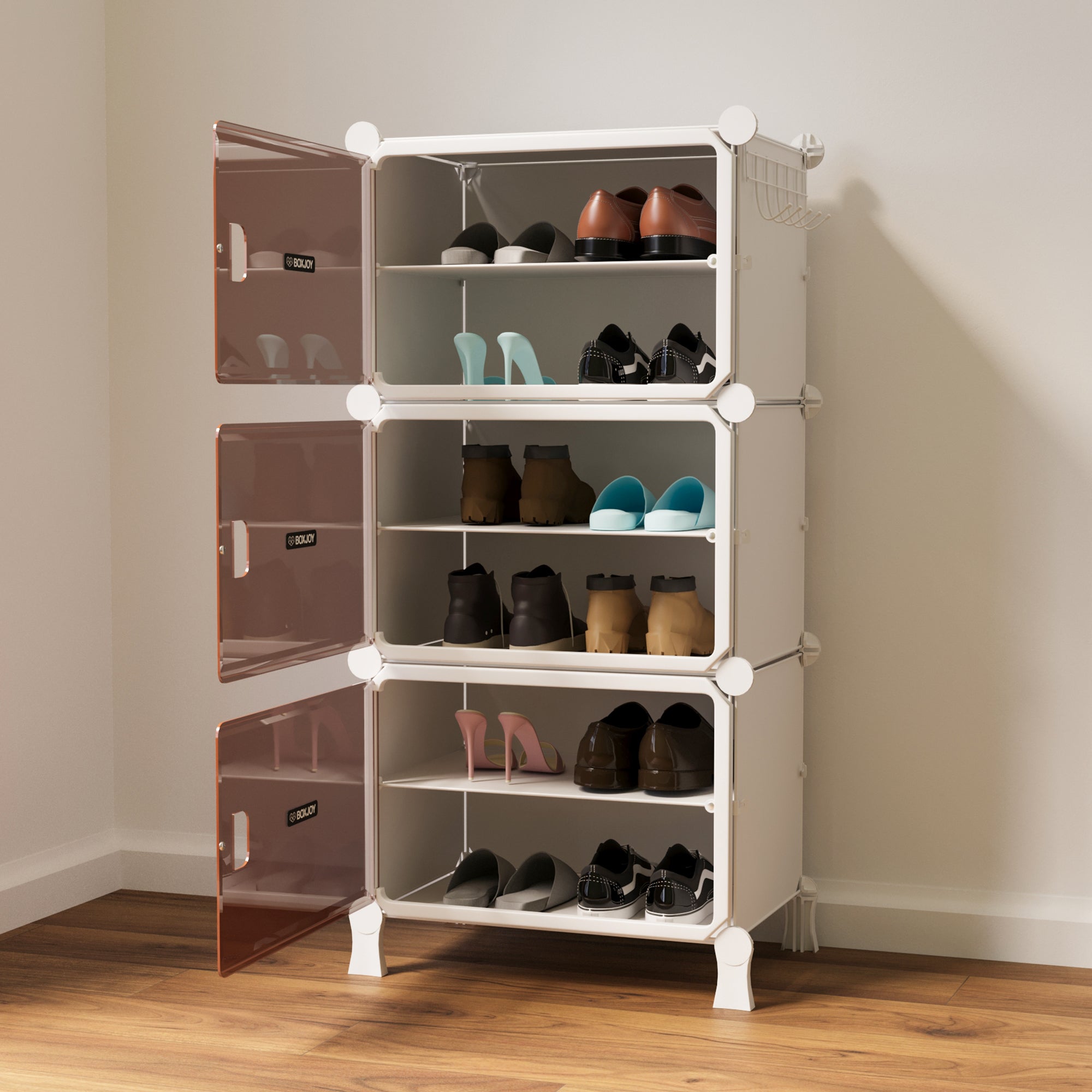 • HARD PET PLASTIC DOORS WITH MAGNETIC CLOSURE: Built with durable hard PET plastic doors and strong magnets, this closed shoe cabinet keeps dust and dirt out while offering clear visibility. The secure closure ensures your footwear stays protected and well-maintained.