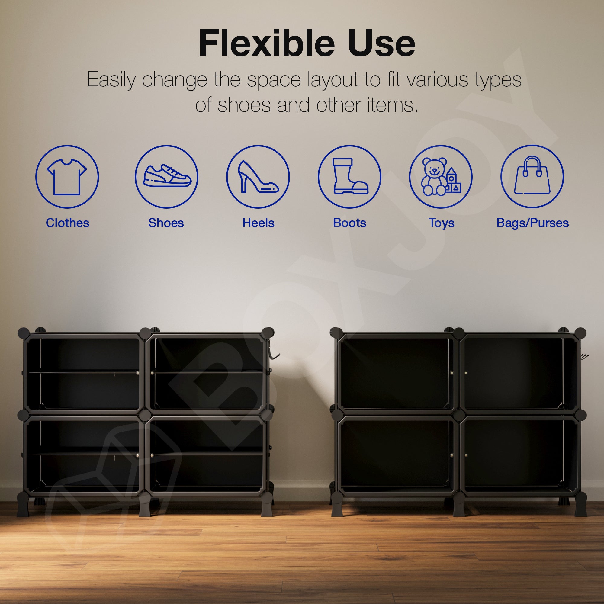 • DURABLE MATERIAL & STURDY FRAME: Made with high-quality waterproof PP panels and a reinforced metal frame, the rack is strong, stable, and built for long-lasting use. The robust design easily holds multiple pairs of footwear without bending or sagging.