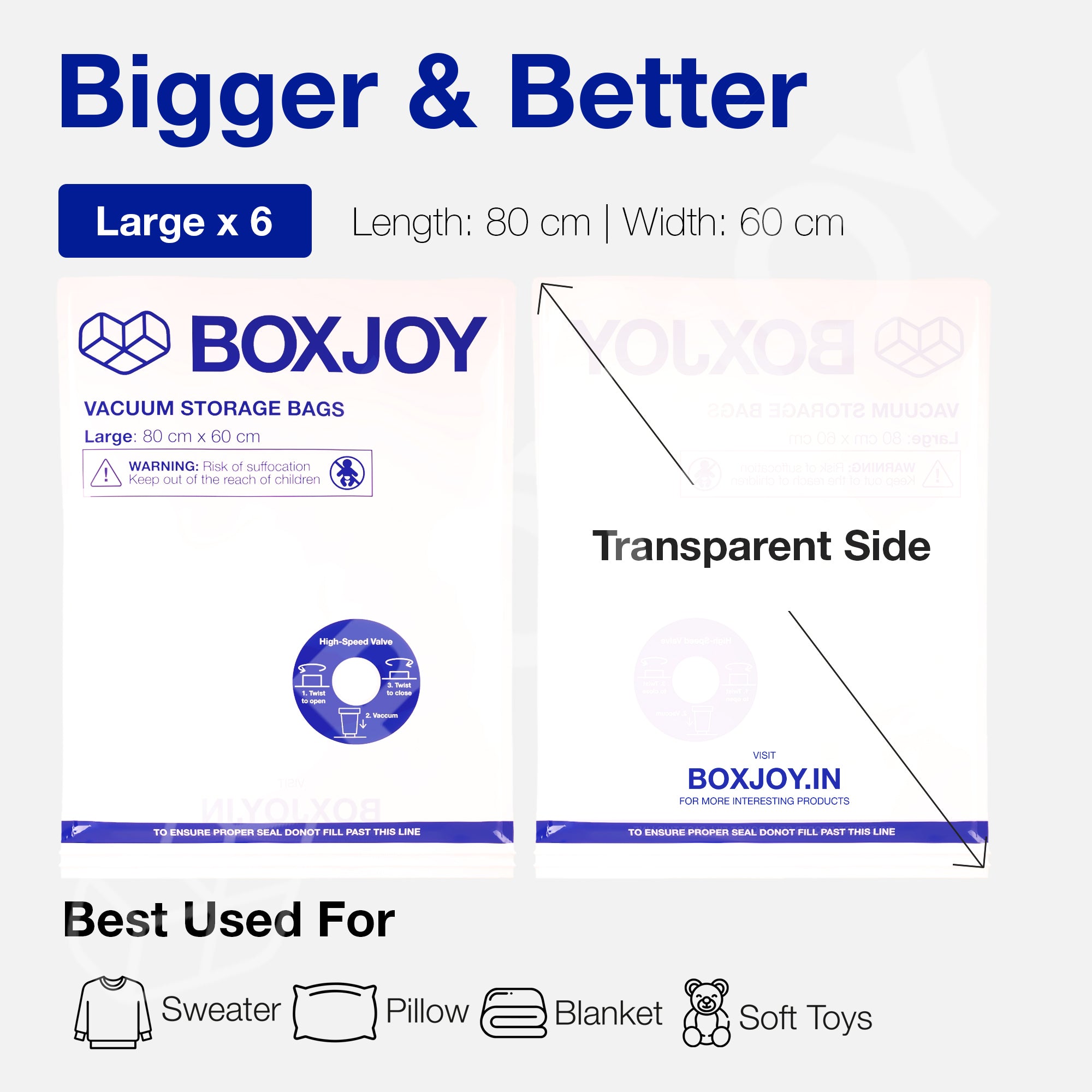 • SPACIOUS STORAGE OPTION: Designed for bulkier items like bedding, pillows, or large coats, these large-sized bags (60cm x 80cm) provide ample space. Ideal for households needing seasonal or long-term storage solutions for large essentials.
